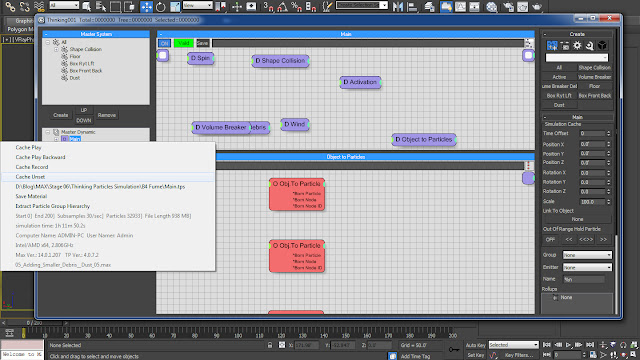 01.1 Before Simulating Dust Fumes through Fume FX, we have to re-cache the whole simulation. So in order to do that we have to remove the older Cached Simulation first by selecting the ‘Cache Unset’ option from the right click menu of the ‘Main’ Dynamic set. And now we are ready to cache the simulation by selecting ‘Cache Record’ option from ‘Main’ Dynamic Set’s right click menu.