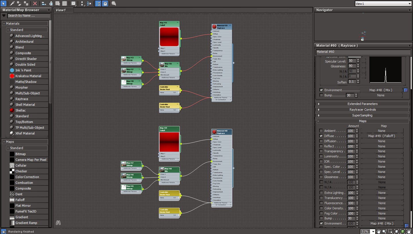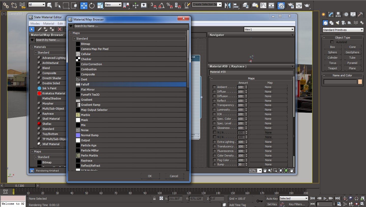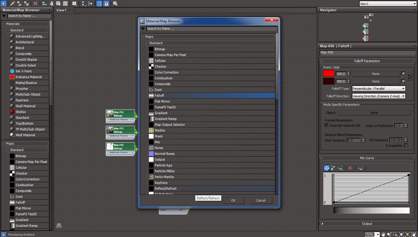 08 Moving a step ahead we will now refine the Car Paint Material by adding in a few more detail to the Diffuse Fall-Off Map. Dive inside the ‘Diffuse’ map slot ‘Fall-Off’ menu and inside the ‘Front Color’ Map Slot under the ‘Fall-Off Parameters’ load in another ‘Fall-Off’ map from the Material / Map Browser window.