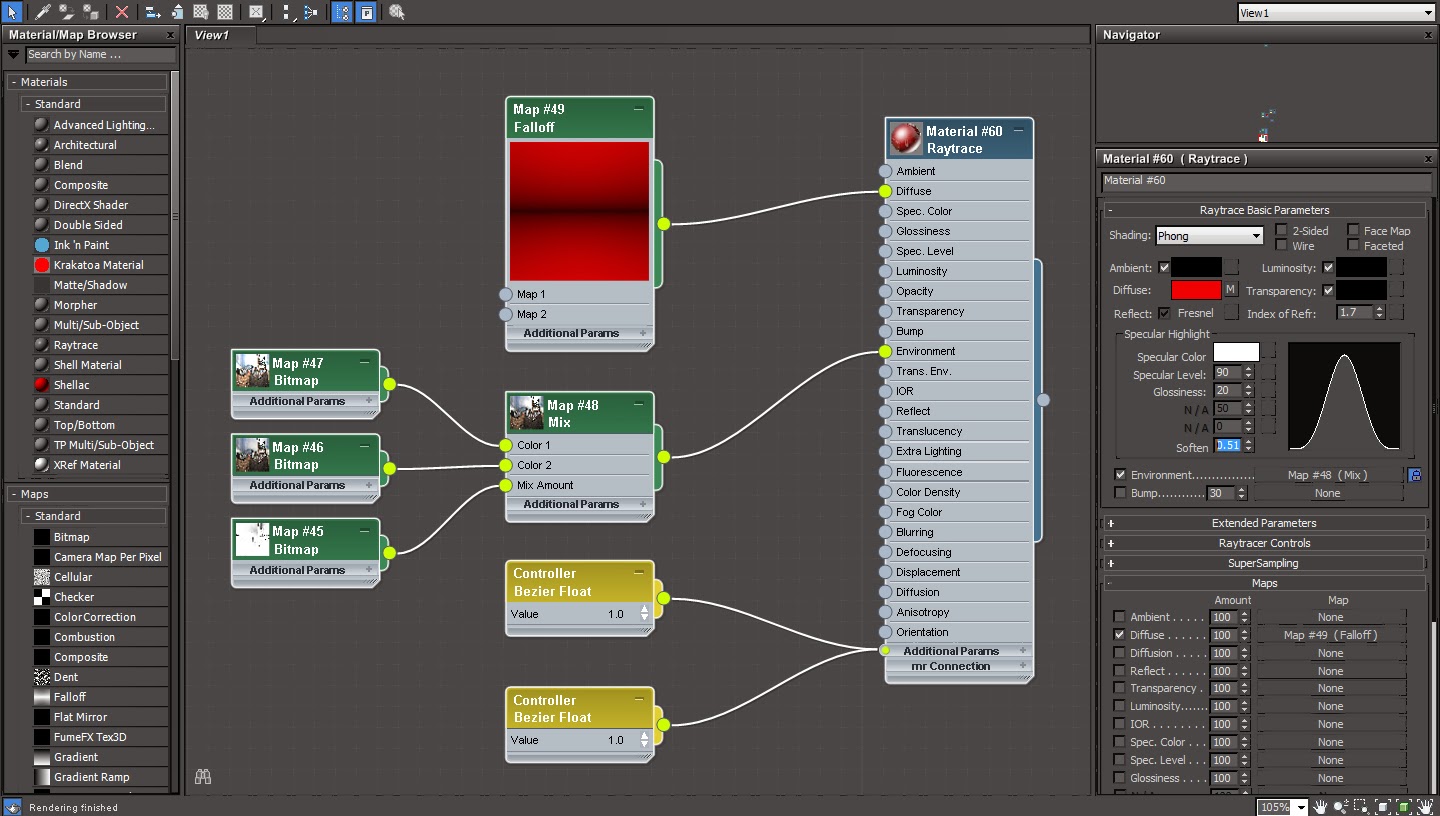 01 In this lesson we will improvise the look of the Metallic Paint Material that we created in the last lesson. Inside the ‘Slate Material Editor’ bring up the parameters of ‘Ray-trace Material’ by double clicking on it. Under the ‘Specular Highlight’ parameters bring down the values of ‘Specular Level’ and ‘Glossiness’ to ’50’ and ’90’ respectively.