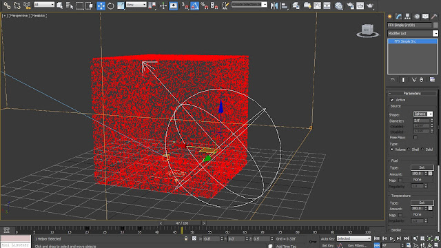 03 Decrease the ‘Diameter’ of the Simple Source to ‘0.5’. Also rotate it at a ’45’ degree angle in order to make the dispersion at that angle. Select the ‘Fume FX’ Container Grid and hit ‘Open Fume FX UI’ in order to access the Fume FX dialogue box.