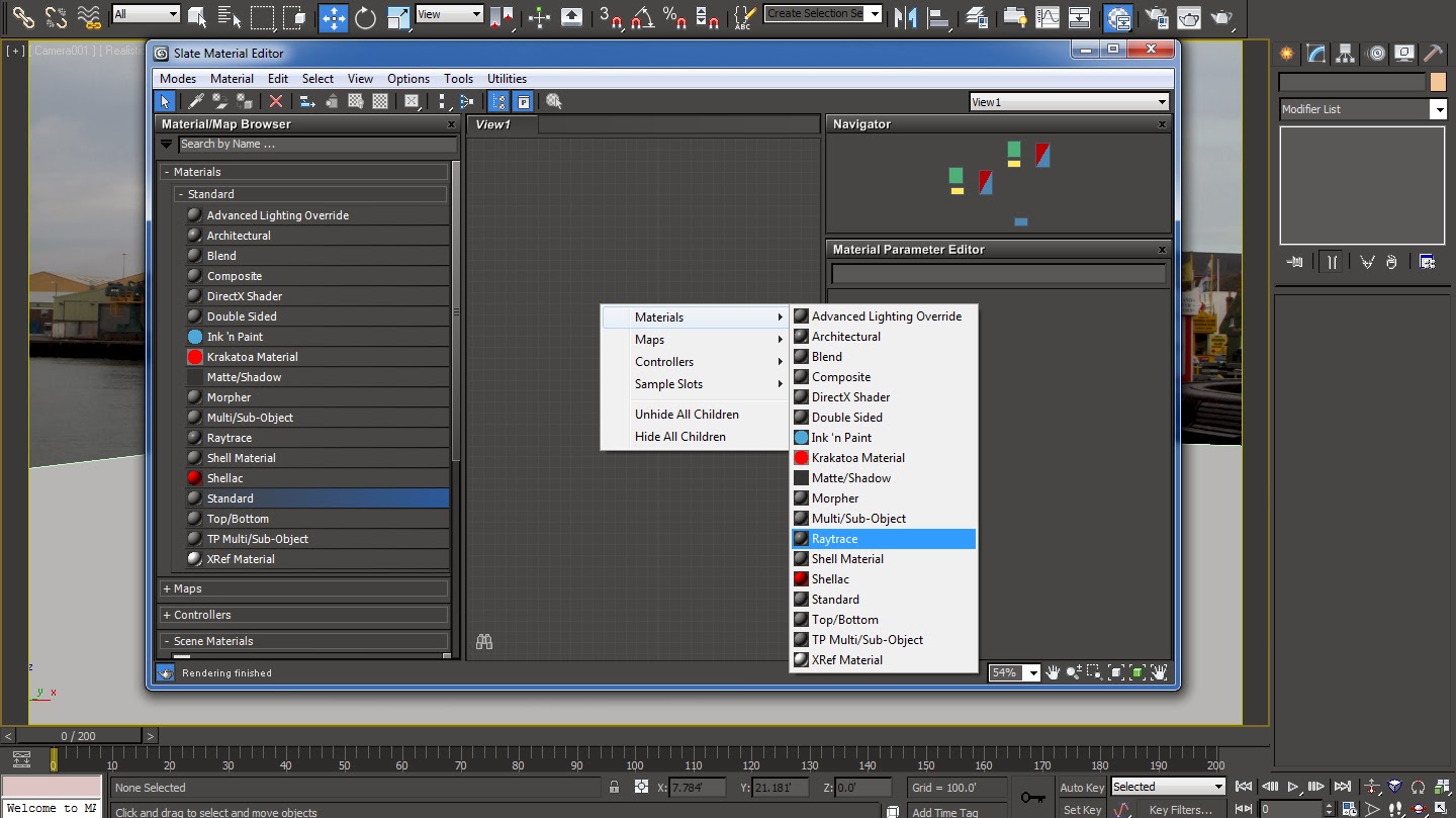 01 Now we will further improvise the IBL scene by adding in some metallic objects into it. Open up the ‘Slate Material Editor’ by pressing ‘M’ on the keyboard and create a ‘Raytrace’ material inside it from the right click menu.