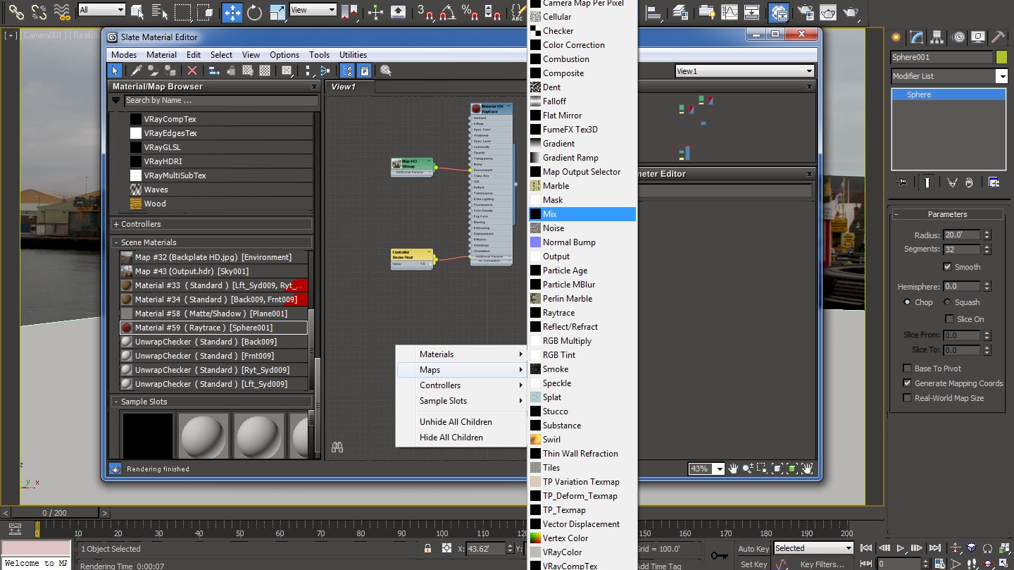 05 Now we will improvise the result by improvising the effect of the current HDR Image. We will achieve it by creating a Mix Map inside 3DS Max and blending up the standard HDR and a boosted HDR from Photo-shop. Bring in a ‘Mix’ map inside the ‘Material Slate Editor’ from the right click menu.